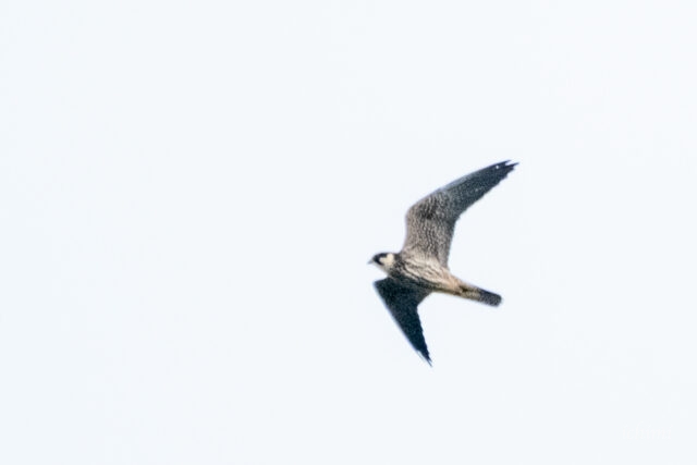 最後にピューと出てきたチゴハヤブサ↓。これがこの日の目玉でしたが遠くて写真はぼやぼやでした。