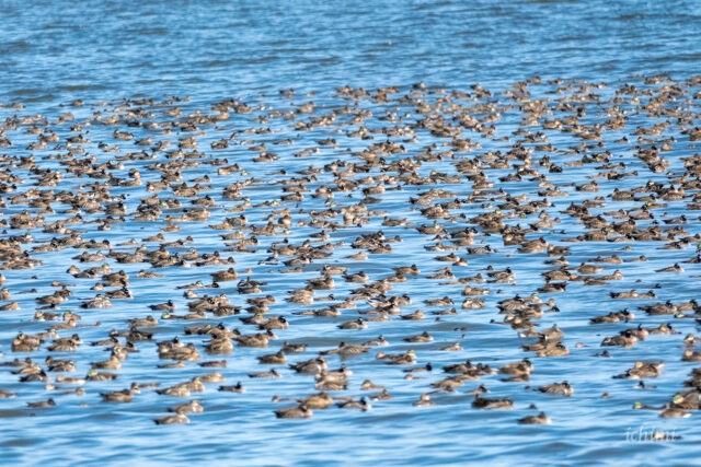 何が主かというとトモエガモの群れ。沼を覆い尽くしてトモエガモがいます。とても遠いので一羽をじっくり観察とはいかないのですがまぁそれは仕方ない。飛行機がよく飛ぶのでそのたびに群れは飛び立ち、帯のようになって沼を旋回、そして着水の繰り返し。そのたびにすごーーーーい、わぁーーーとか言いながら見ていました。