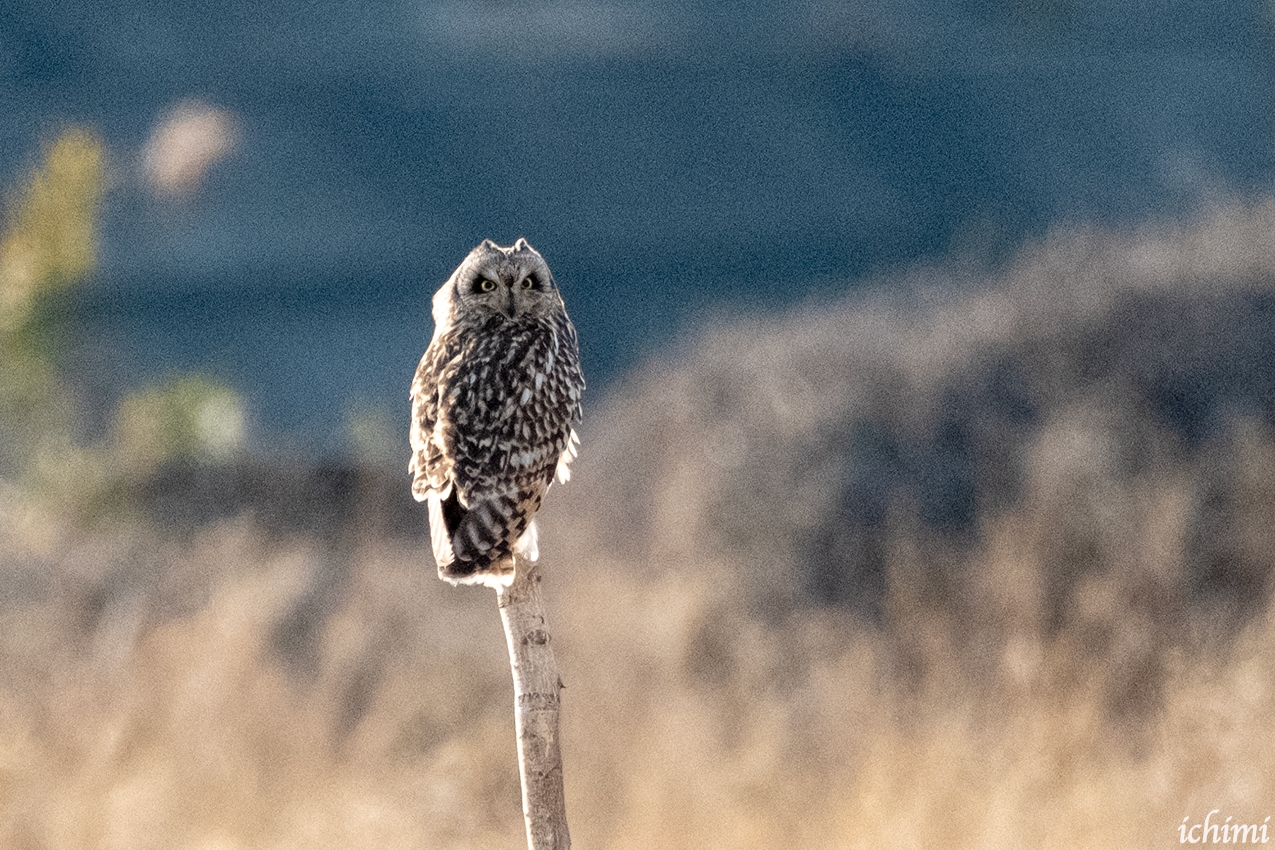 いるよと教えてもらったのでちょっと遠かったですが鳥友4名で行ってきました。 到着して出てくるまではいつも半信半疑なのですが大勢の人が飛ぶよとかいるよとか教えて下さったので待っていると芦原から飛び出してきました。 杭にとまって首をほぼ180度回して後ろを観察。可愛い顔でしょ